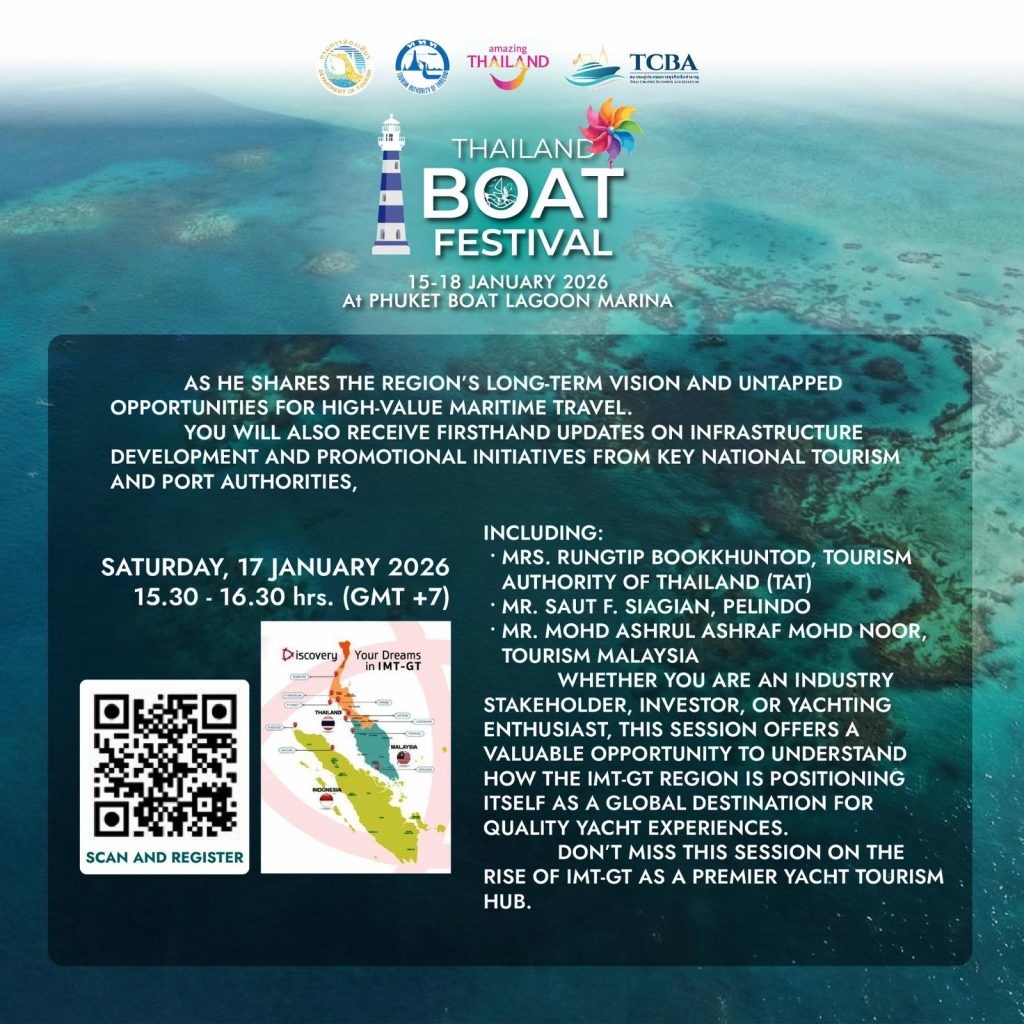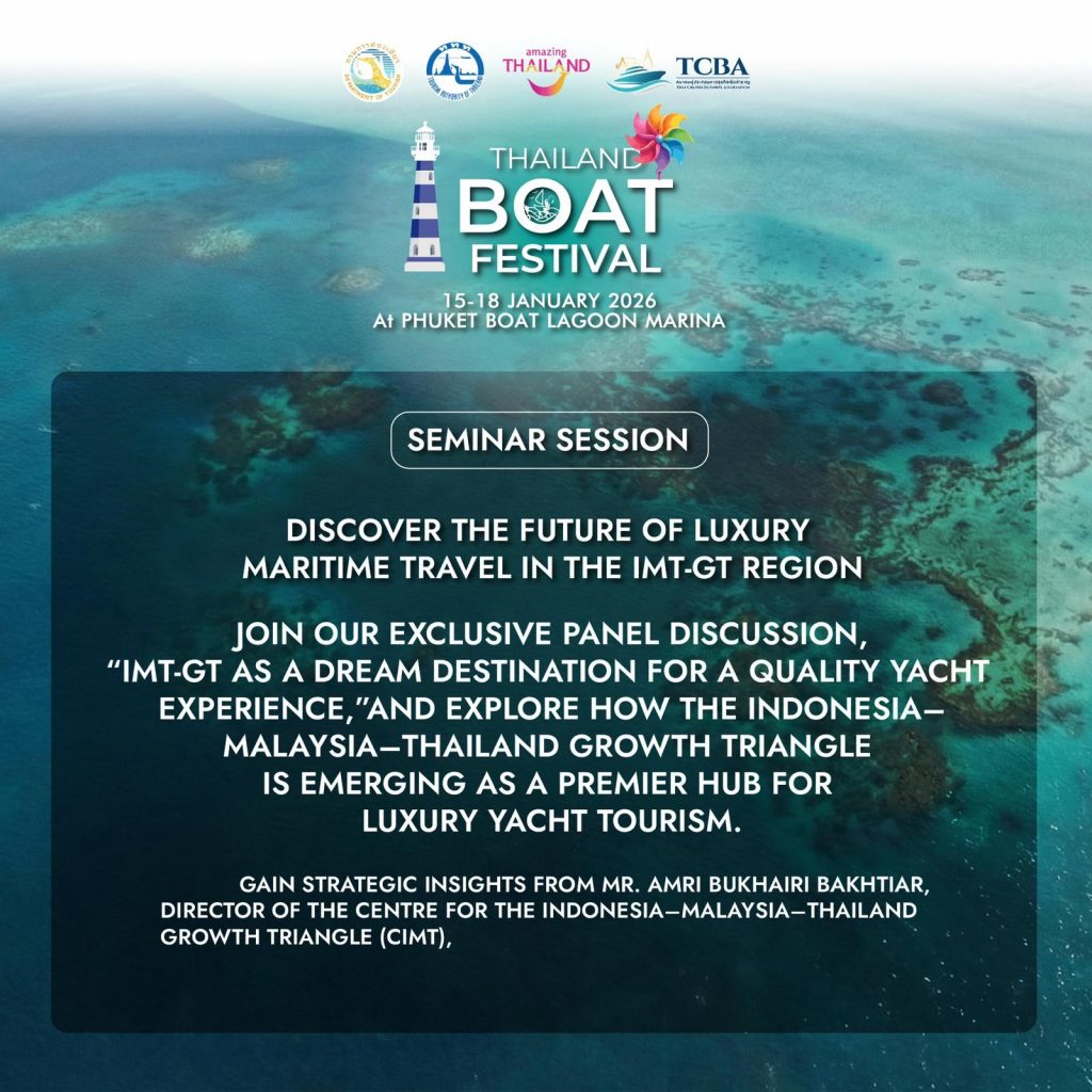 Beyond the marina itself, Thailand Boat Festival expands into a wider conversation about tourism, investment, and regional development. With the full support of the Tourism Authority of Thailand (TAT), the event will host a dedicated seminar titled “Unlocking Thailand’s Potential as a Leading Marine Tourism Destination in Southeast Asia and the IMT-GT Dreamed Destination for Quality Yacht Experience.” The seminar brings together perspectives from the Department of Tourism (DOT), CIMT, and representatives from Malaysia, Indonesia, and Thailand, reinforcing Thailand’s growing role within the IMT-GT sub-region and its ambition to become a premier yachting hub.